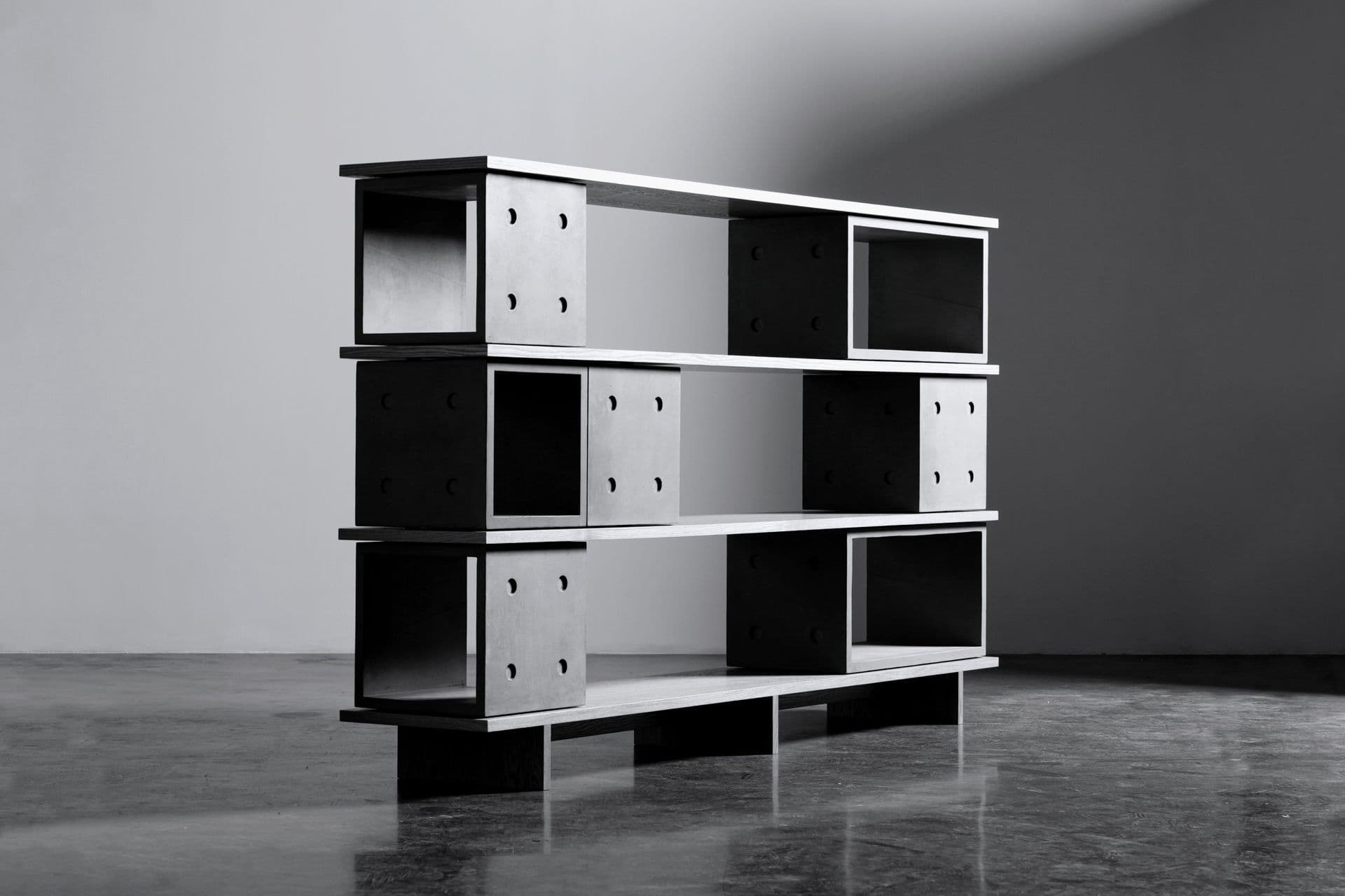 Beton beperkt zich alleen niet meer alleen tot tafels en stoelen. Zoals we bij veel opkomende meubelmerken zien, kiezen we steeds vaker voor slimme én smaakvolle oplossingen om spullen in op te bergen. De klassieke boekenkast, laat staan stellingkast, is gelukkig verleden tijd.