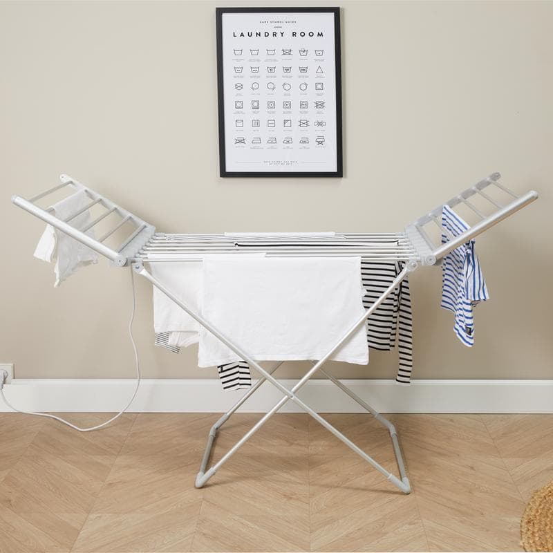 Droog snel en energiezuinig je was met dit elektrische droogrek. Binnen 5 minuten warmen de 20 buizen op tot 45-55 graden. Met 12 meter hangruimte biedt het ruimte voor een volle was. Opvouwbaar en gemakkelijk op te bergen.