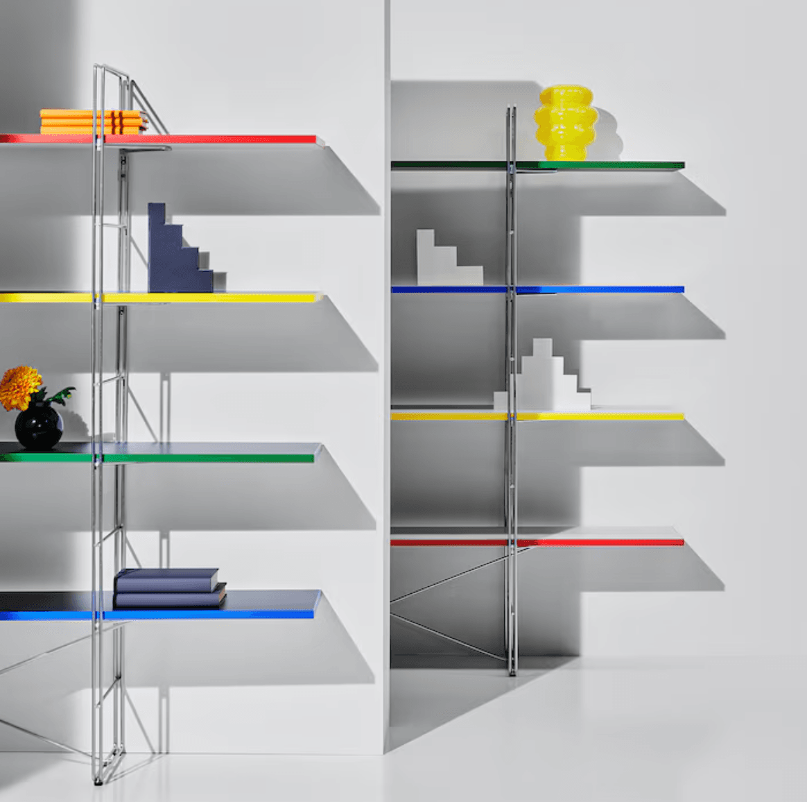 De BYAKORRE valt op door de gekleurde planken in blauw, groen, geel en rood. Deze frisse kleuren geven de kast een moderne uitstraling die perfect past bij de smaak van nieuwe generaties en hedendaagse interieurstijlen. Het opvallende silhouet doet denken aan de stedelijke interieurtrend uit de jaren '80.