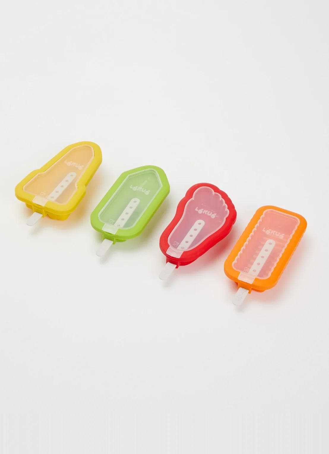 € 18.5Deze zeer kleurrijke vormen voor ijslollies in silicone stellen je in staat ze gemakkelijk uit de vorm te halen. Ze kunnen ook gebruikt worden voor bereidingen op basis van yoghurt of sappen.