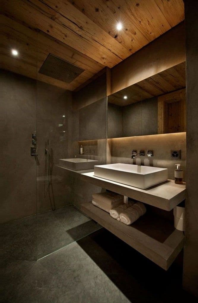 Ook kun je voor een industriële look gaan door industriële lampen aan te schaffen en aan de wand te bevestigen. Combineer die met grof hout en de industrial look in de badkamer is een feit!