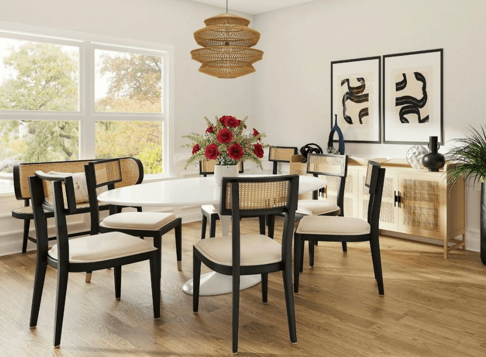 Een effectieve manier om een beige eetkamer interessant te maken, is door te spelen met verschillende texturen. Kies bijvoorbeeld voor een gladde eettafel en combineer dit met eetkamerstoelen met zachte bekleding. Voeg daarnaast meer textuur toe aan de wand met behang en leg een vloerkleed op de grond voor een stijlvolle afwisseling. Zelfs wanneer al deze elementen een beige tint hebben, zal de eetkamer nog steeds een stuk sfeervoller ogen.