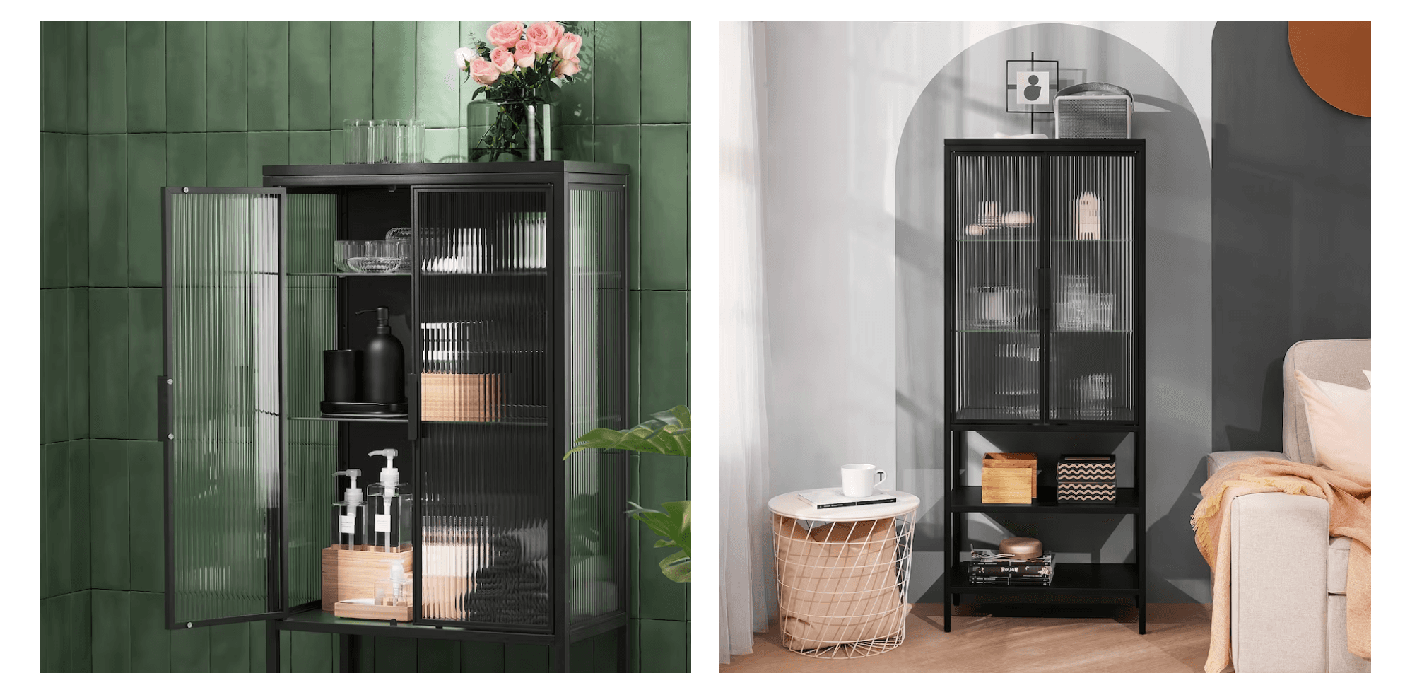 Kleine badkamers verdienen ook een mooi badkamermeubel en deze kast van IKEA is een ideale oplossing. (Maar natuurlijk is deze kast ook geschikt voor grote ruimtes.) Zet spulletjes die je vaak gebruikt op de open plank en de rest stop je lekker weg achter de glazen deur. De glazen plankjes geven je badkamer een gevoel van luxe, zodat je met nog meer plezier jezelf klaarmaakt in de ochtend, of om te ontspannen na een lange dag.