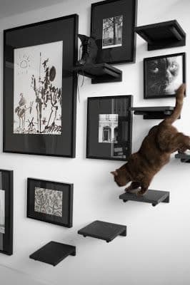 Wil je iets leuks verzinnen voor de kat om naar boven te gaan? Denk dan eens na over een leuke wandoplossing naast de trap waar de kat overheen kan lopen. Dit kan tussen jouw wanddecoratie door of een geheel mooi wandmeubel voor de kat zelf.