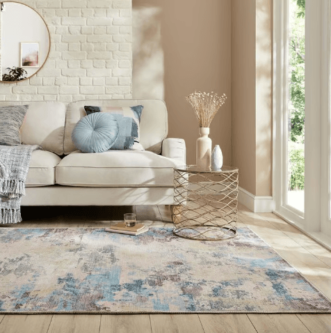 Al enige tijd zocht ik naar het perfecte vloerkleed. Plotseling viel mijn oog op dit cremebruine vloerkleed. De perfecte vondst omdat het een prachtige abstracte print heeft én wasbaar is. Je krijgt het gemakkelijk weer schoon en daardoor gaat het lang mee. Bovendien matcht de kleur perfect met een grijze bank en vrolijke kussentjes die voor kleur zorgen.
